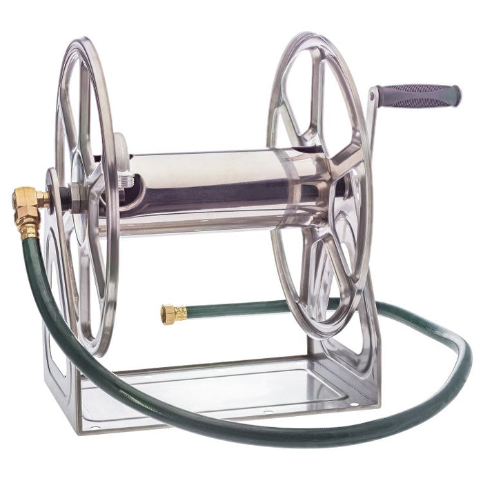 Stainless Steel Wall Mount Garden Hose Reel - 5/8 x 200 ft Capacity - Limited Lifetime Warranty