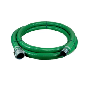 This 1.5 inch suction hose assembly is made from smooth pvc for maximum flow and minimal friction loss. It is strong lightweight and flexible making it ideal for construction, water transfer, agricultural and industrial applications. The high-density ridged PVC helix reinforcement provides added strength for increased durability. Comes with a male pipe and female cam lock fitting that is banded on with galvanized steel clamps for excellent corrosion resistance. Our large inventory of 1.5" green pvc suction hose allows us to ship your hose to you quickly and at a great price. Each water pump hose assembly comes with our 100% satisfaction guarantee!